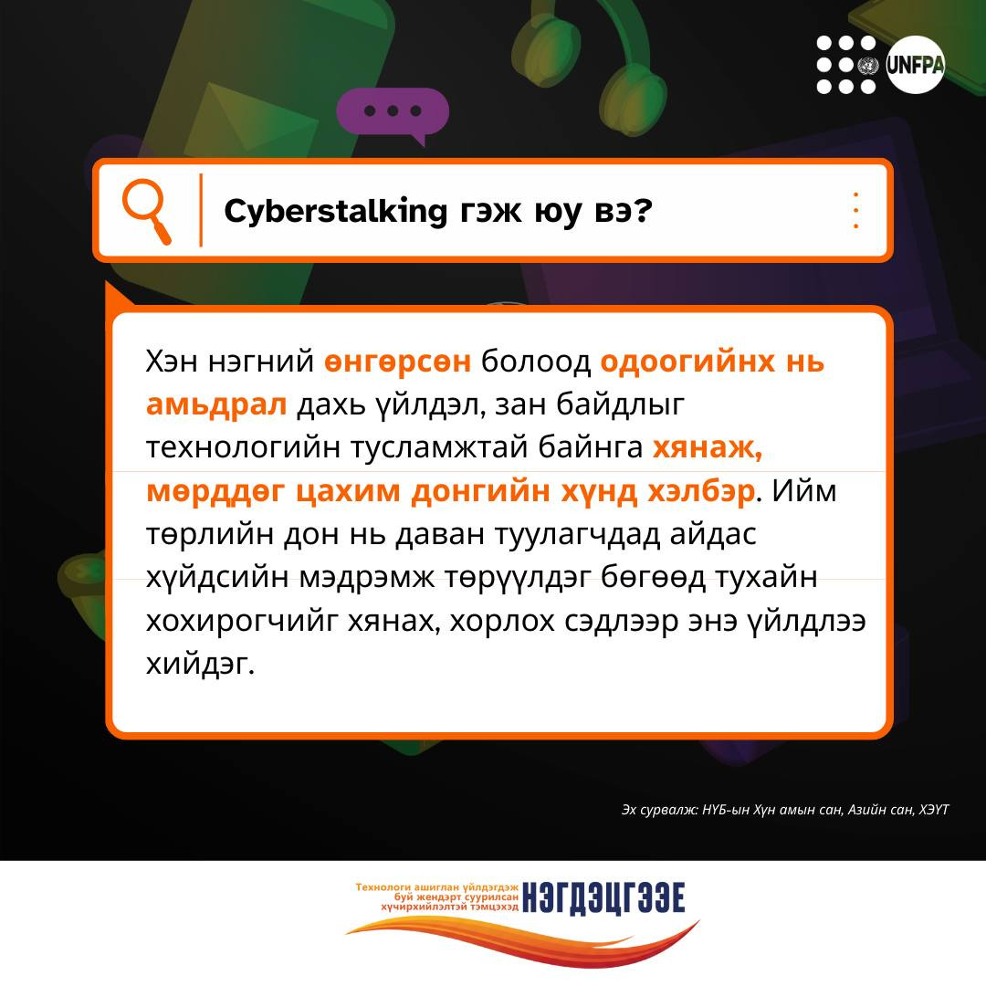 Технологи ашиглан үйлдэгдэж буй жендэрт суурилсан хүчирхийлэлтэй тэмцэхэд НЭГДЭЦГЭЭЕ! ![]()