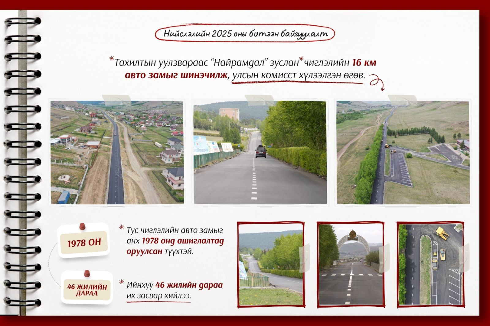 “Найрамдал” зуслан чиглэлийн 16 км авто замыг шинэчилж, улсын комисст хүлээлгэн өгөв.
