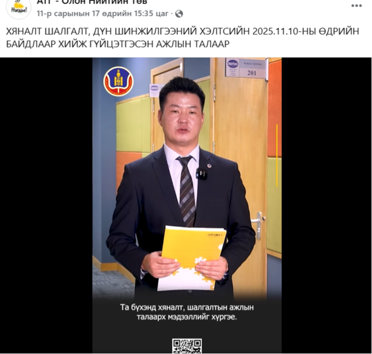 ХЯНАЛТ ШАЛГАЛТ, ДҮН ШИНЖИЛГЭЭНИЙ ХЭЛТСИЙН АЖЛЫН ҮР ДҮН