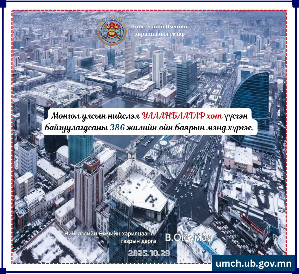 Улаанбаатар хот үүсгэн байгуулагдсаны 386 жилийн ойн баярын мэнд хүргэе.