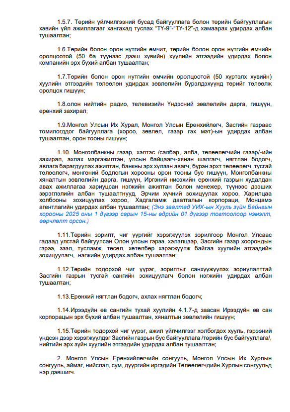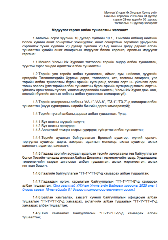 Мэдүүлэг гаргах албан тушаалтны жагсаалт
