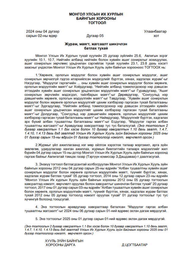 Хууль тогтоомж, дүрэм, журам, гэрээний санал