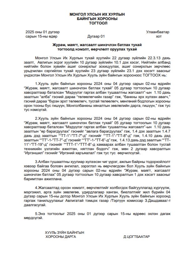 Нийслэлийн иргэдийн төлөөлөгчдийн хурлын тогтоол
