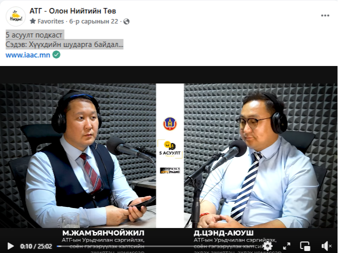 Авлигын эсрэг үйл ажиллагаатай холбоотой мэдээлэл