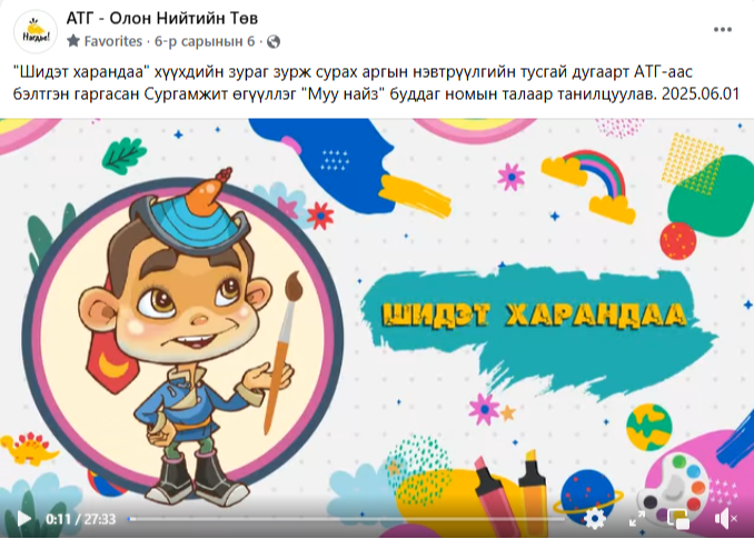 "Шидэт харандаа" хүүхдийн зураг зурж сурах аргын нэвтрүүлгийн тусгай дугаарт АТГ-аас бэлтгэн гаргасан Сургамжит өгүүллэг "Муу найз" буддаг номын талаар танилцуулав.