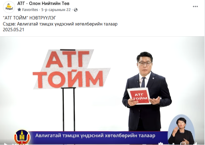 “АТГ ТОЙМ” НЭВТРҮҮЛЭГ Сэдэв: Авлигатай тэмцэх үндэсний хөтөлбөрийн талаар