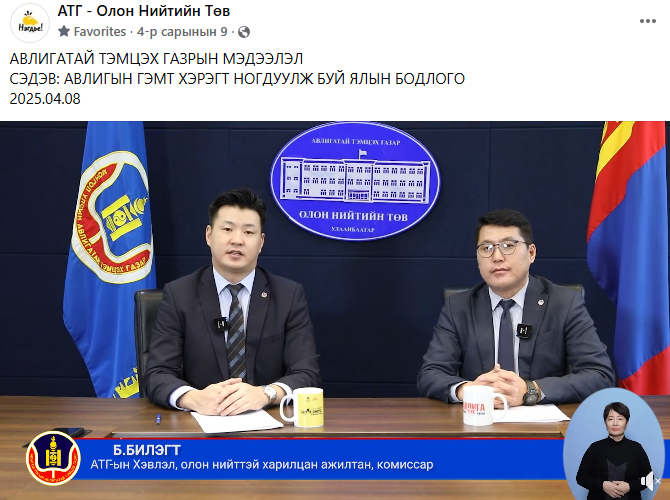 АВЛИГАТАЙ ТЭМЦЭХ ГАЗРЫН МЭДЭЭЛЭЛ СЭДЭВ: АВЛИГЫН ГЭМТ ХЭРЭГТ НОГДУУЛЖ БУЙ ЯЛЫН БОДЛОГО