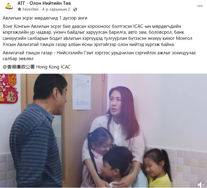 Хонг Конгын Авлигын эсрэг бие даасан хорооноос бэлтгэсэн ICAC-ын мөрдөгчдийн мэргэжлийн ур чадвар, үнэнч байдлыг харуулсан барилга, авто зам, боловсрол, банк санхүүгийн салбарын бодит авлигын хэргүүдэд тулгуурлан бүтээсэн энэхүү киног Монгол Улсын Авлигатай тэмцэх газар албан ёсны эрхтэйгээр олон нийтэд хүргэж байна.